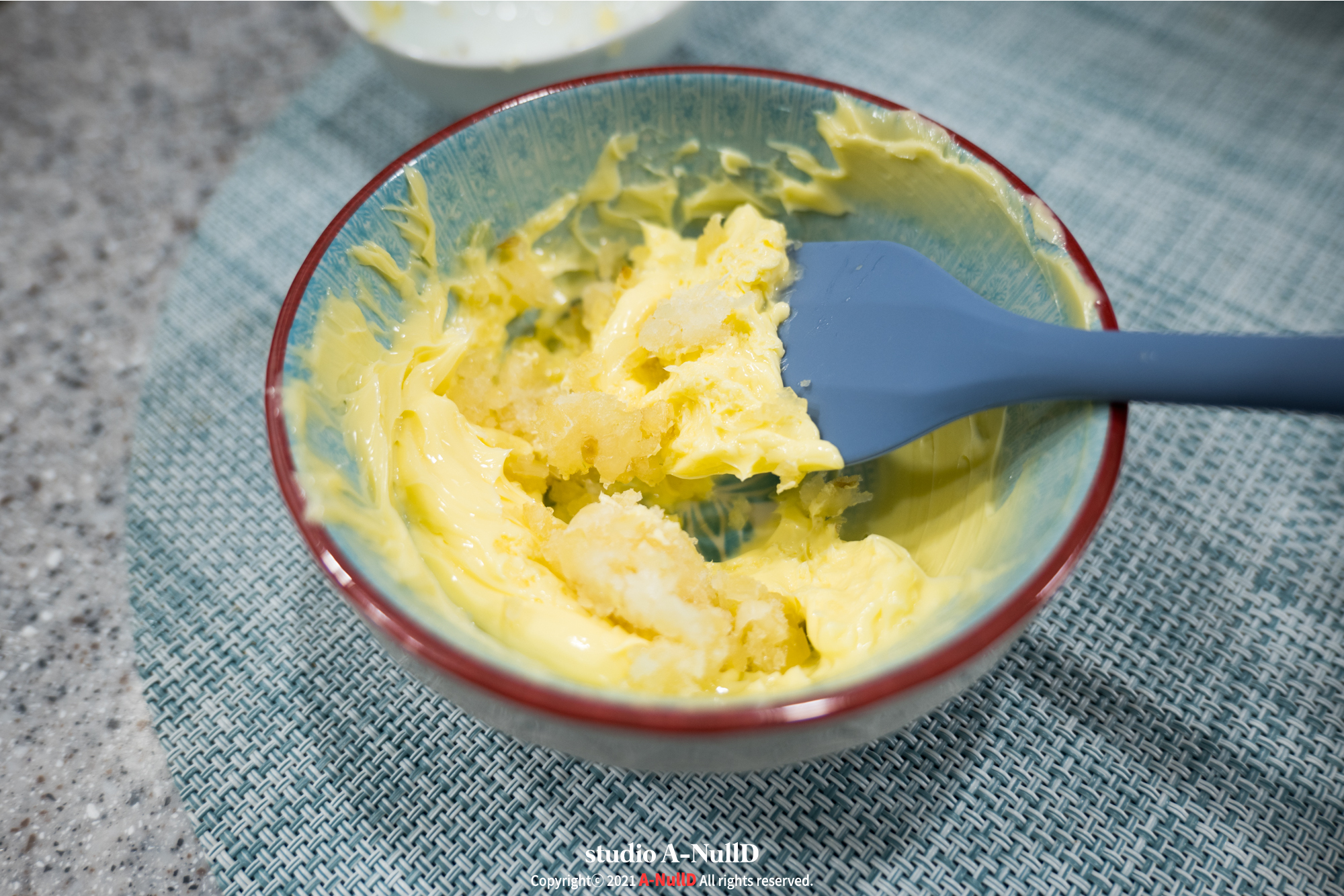 버터는 실온에서 조금 녹여둔다. 이따가 어차피 휘적휘적 하려면 ... ...