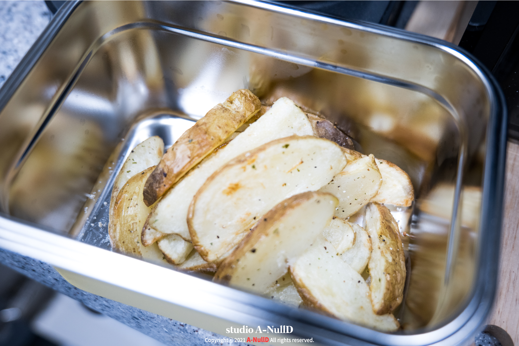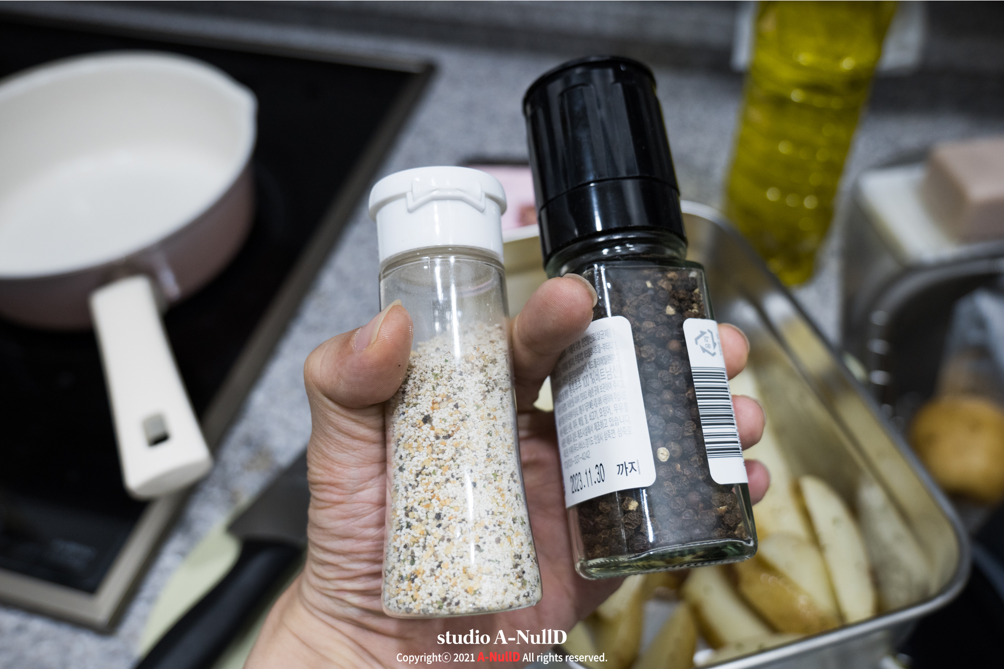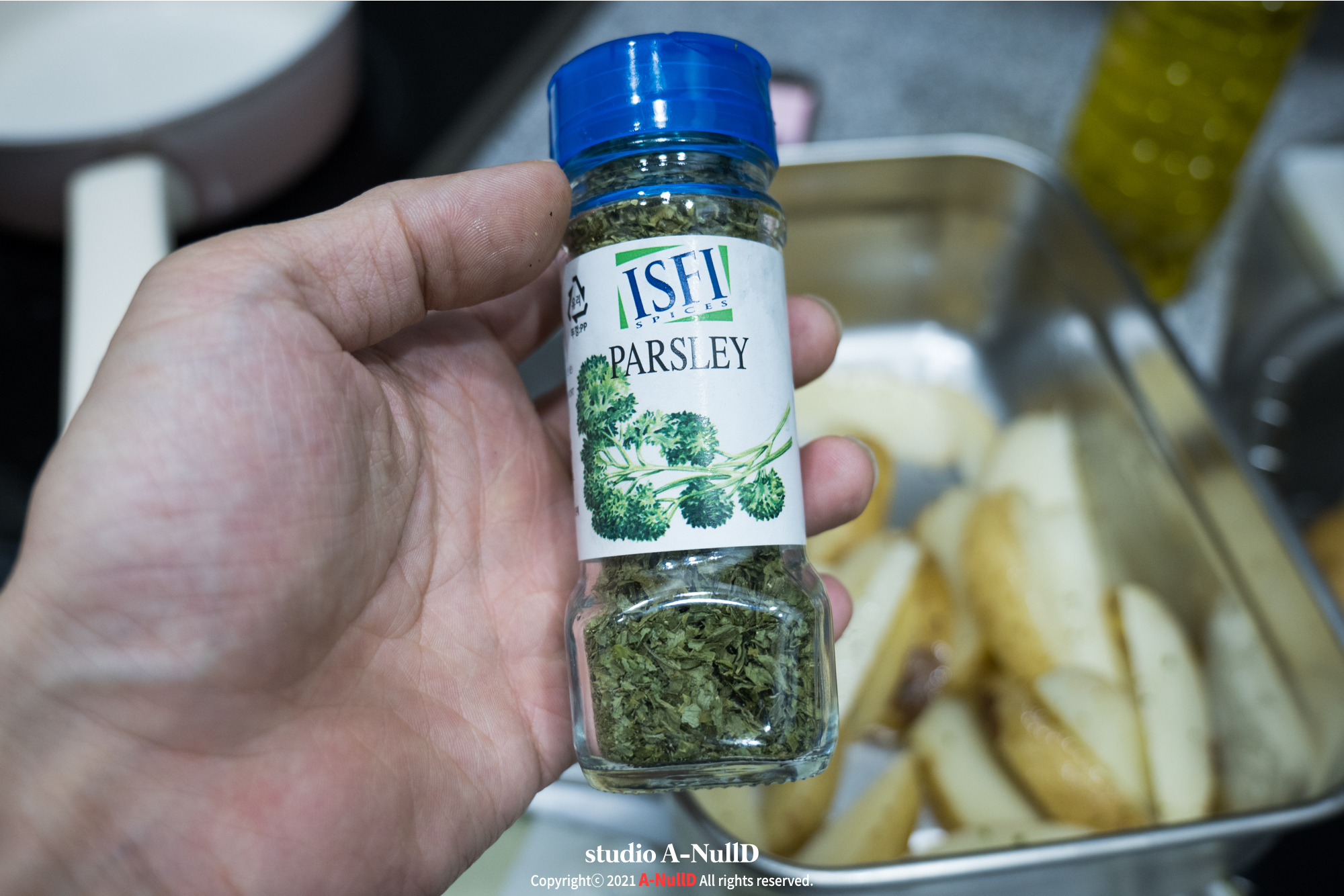 감자, 소금, 후추, 파슬리(필수아님), 파마산치즈가루(있음좋쥬), 오일