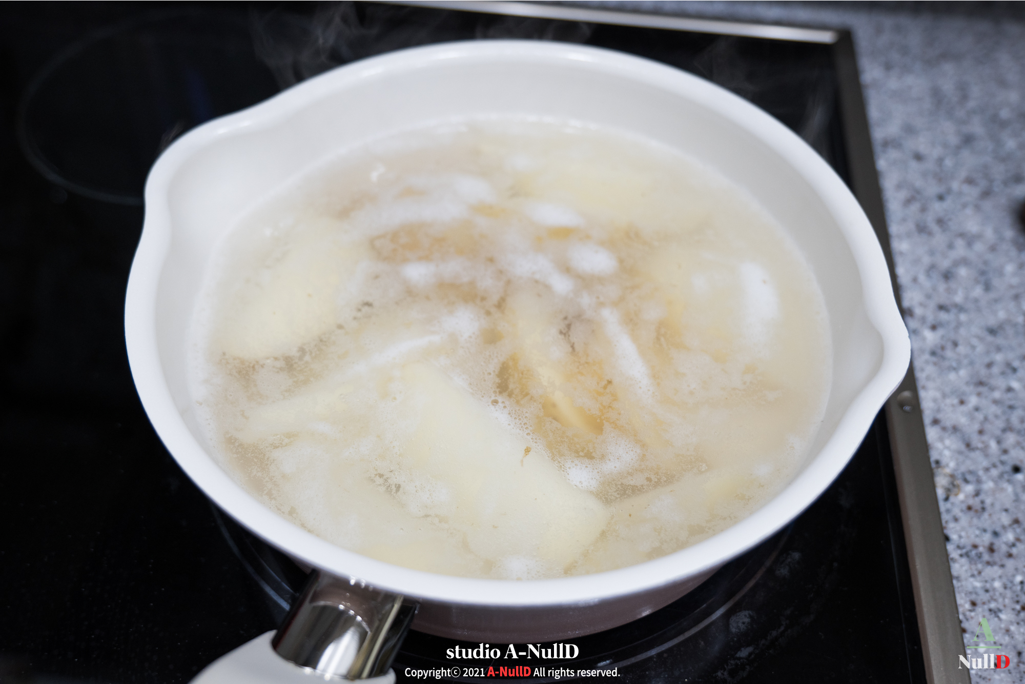 사실 뭐 안 삶아도 되긴 하는데, 전분기도 제거하고,