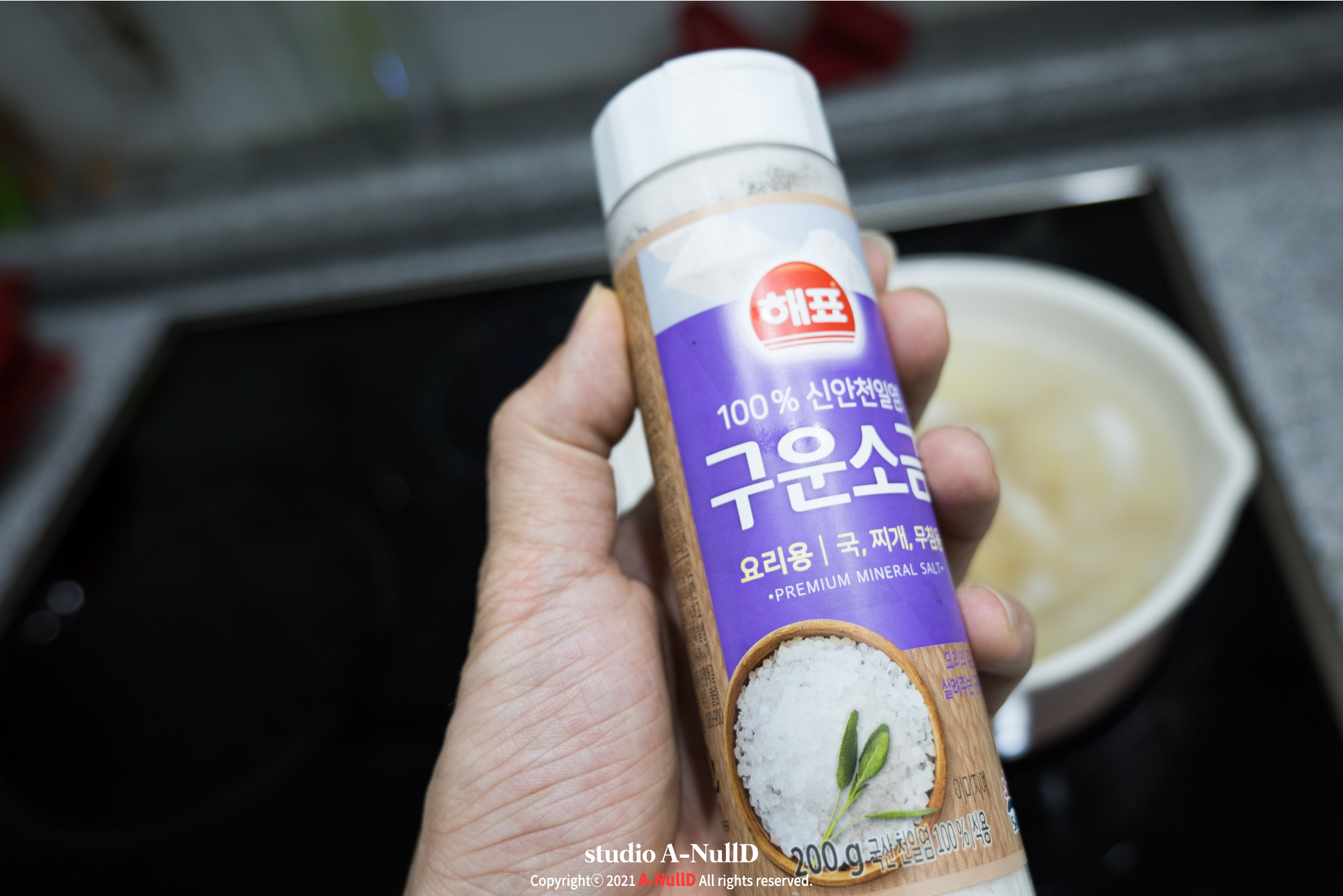 삶으면서는 그냥 구운 소금 한꼬집 넣었다.