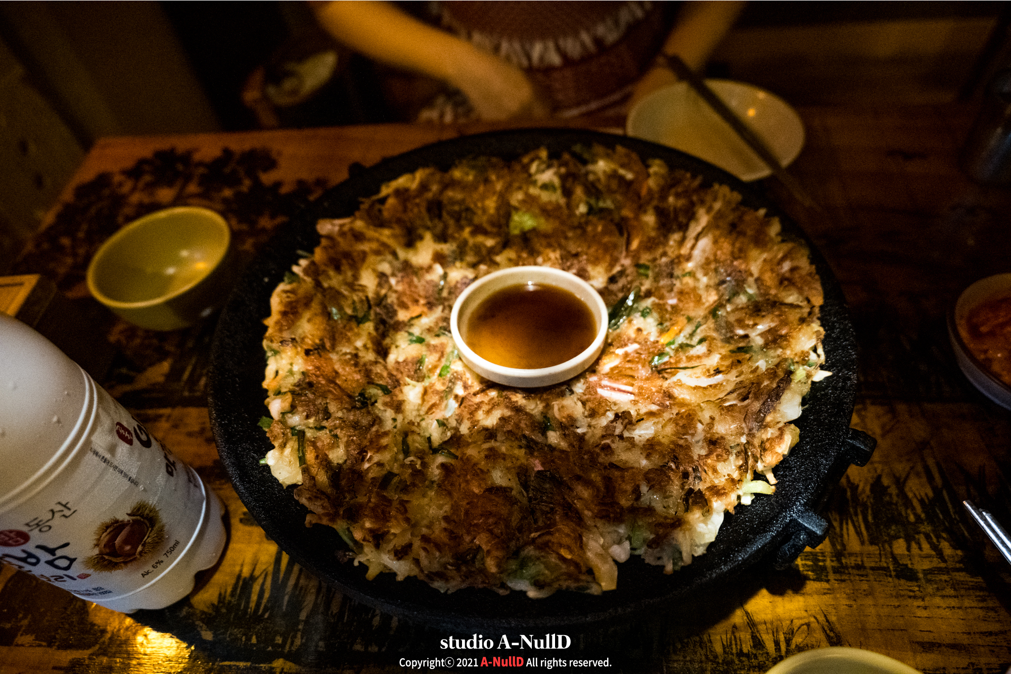 오랜만에 해물파전을 시켜서 맛있게 먹었다.