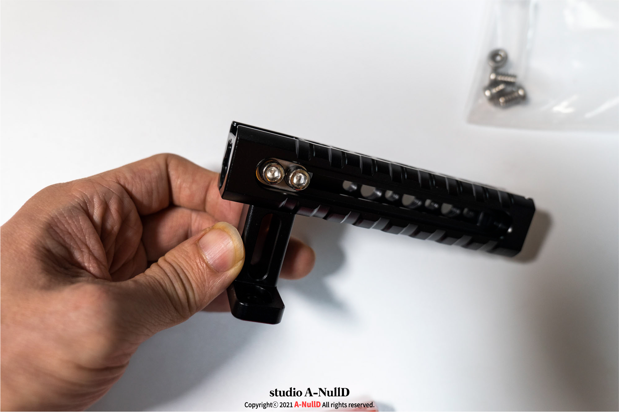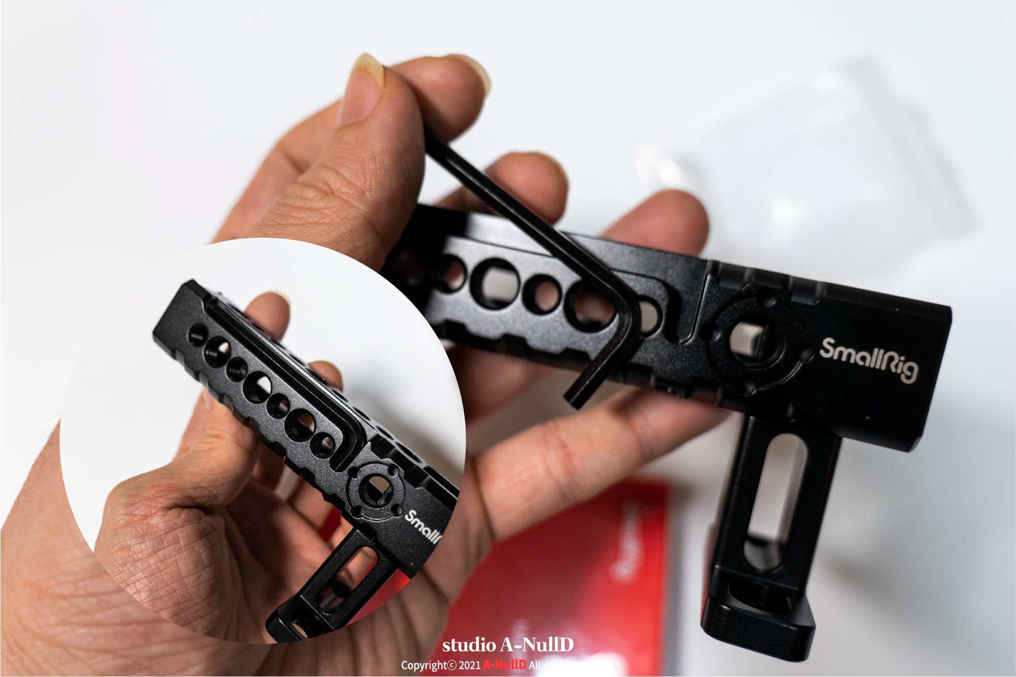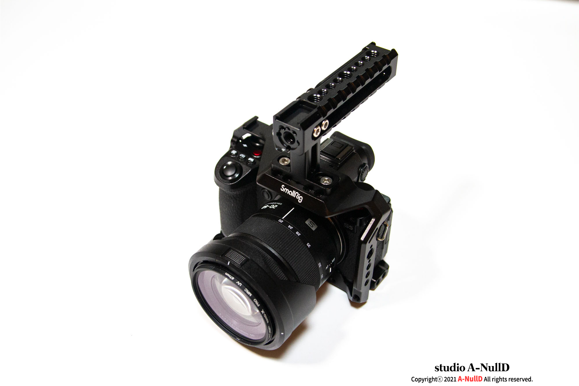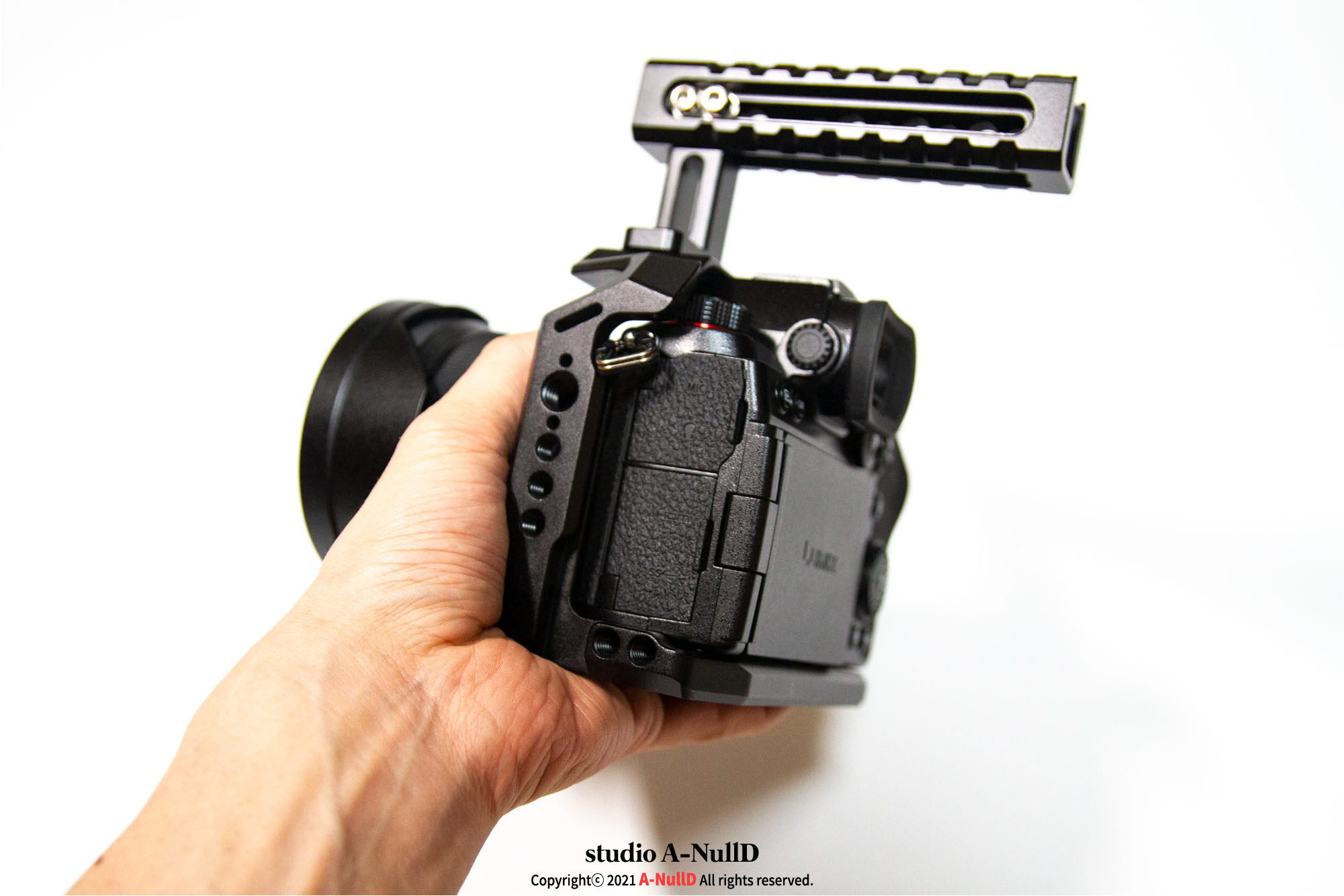 간단하게 탑핸들이라고 불리우는 녀석으로 케이지에 고정시켜서 들고 다니기도 편리하고 영상 찍는데도 편리, 또한 마이크 달 수 있고, 활용 범위는 아주 다양하다.