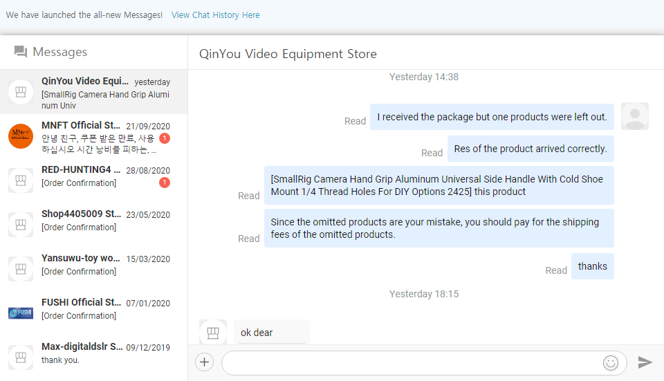 답변은 바로 오지 않아서 알리익스프레스 스타일로 무심하게 냅두고 한번 봤더니, 번역기를 돌려서 다시 보내준다고 한다. 일단은 믿고 기다려볼까 하는데, 아니 ... 가뜩이나 느린데, 보내는지 안보내는지는 어떻게 확인을 해야할지도 고민이다. 추후에 물건을 받게 되면 추가하도록 하겠다.