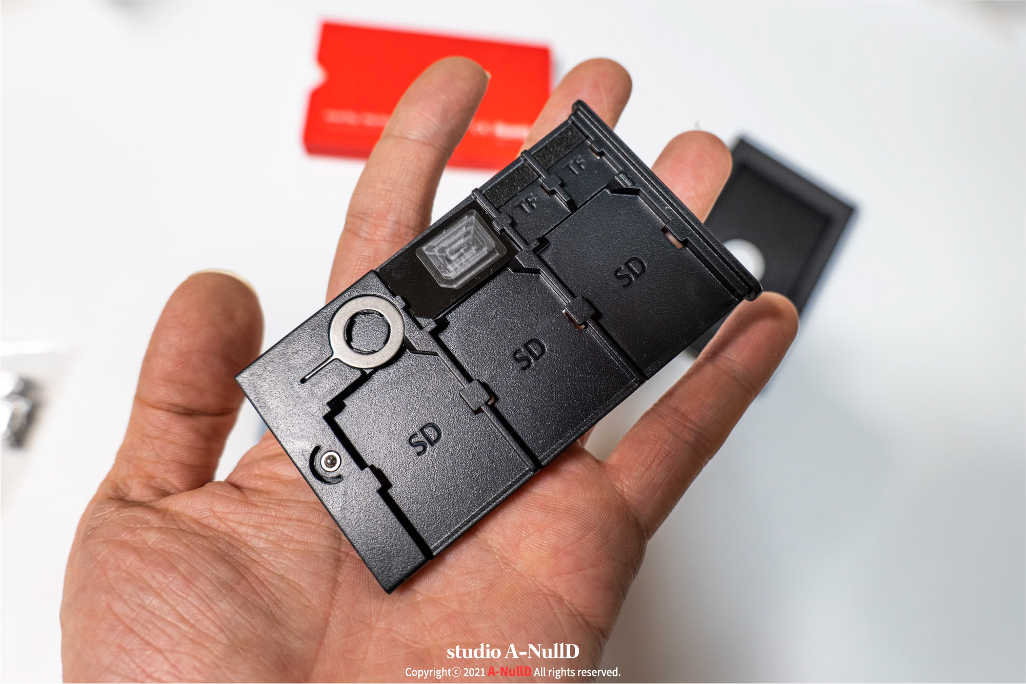 살짝 밀어보니 플라스틱으로 되어 SD 카드들을 안전하게 보관 휴대할 수 있도록 된 카드 형태의 제품이다. 나름 사용성이 없지 않아 보인다.