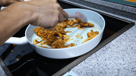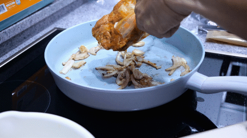 양념된 닭고기 투하!