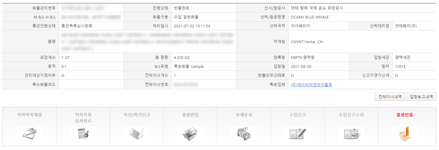 이미 다 통과하고 물품 반출!