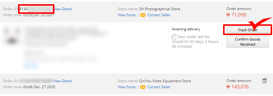 상세 조회는 일단 [ORDER] - [TRACK ORDER] 클릭!!