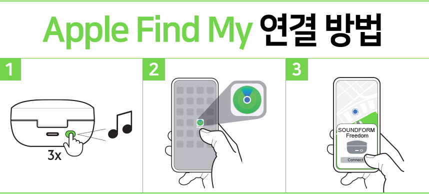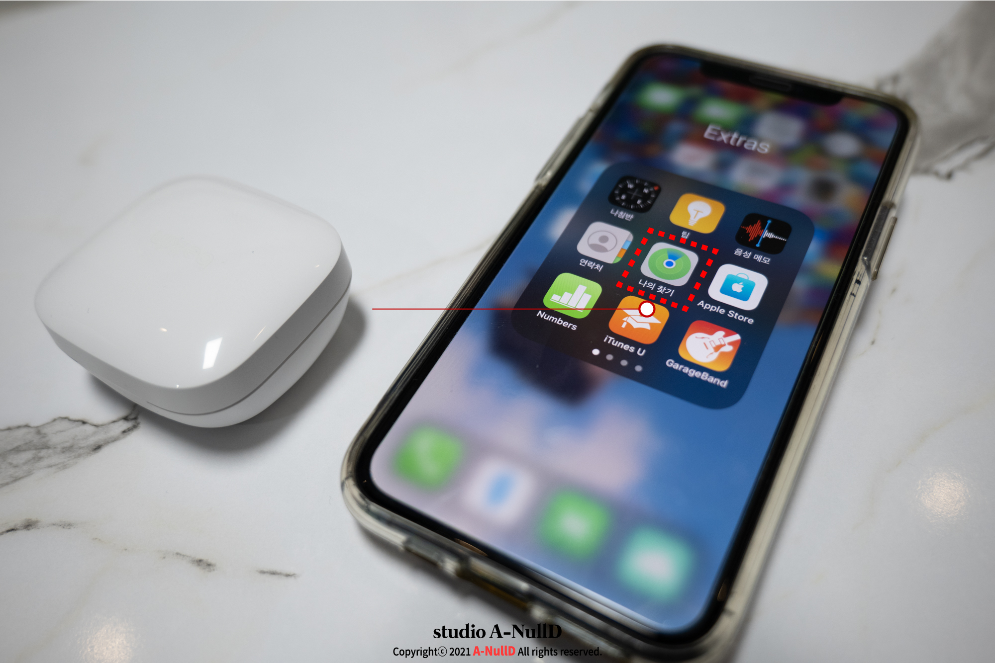 케이스에 있는 버튼을 3번 누른후 나의찾기(FIND MY)를 통해