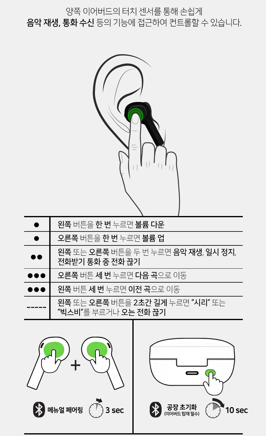 | 배터리 사이즈 | 이어버즈(각 60mAh), 충전케이스(520mAh) | |