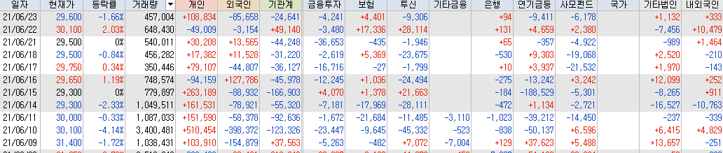 거래량은 터졌지만 대부분 외인과 기관등에서는 모두 매도를 했고,
