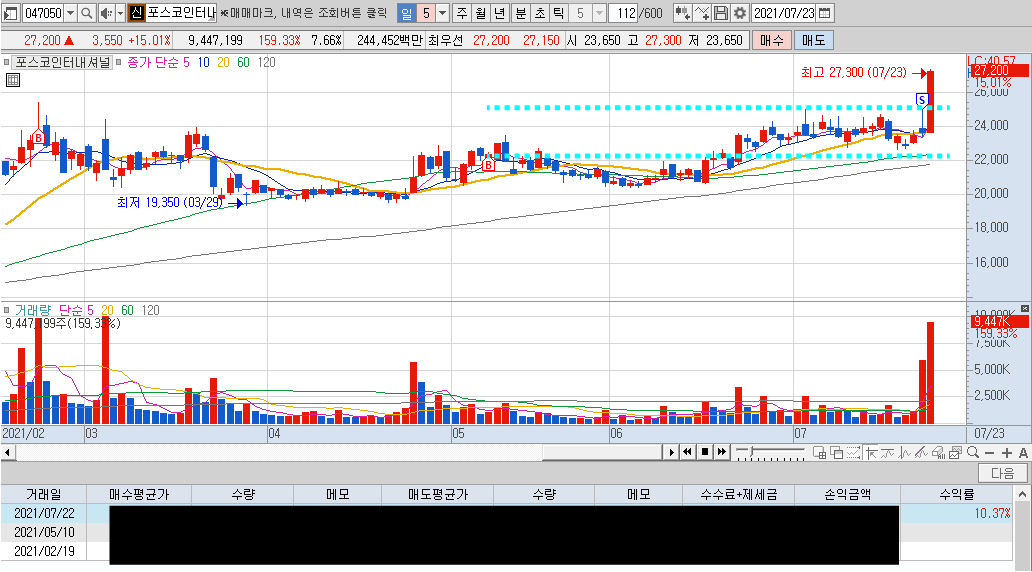 사실 며칠을 더 기다려서 바닥을 보고 매수했으면,